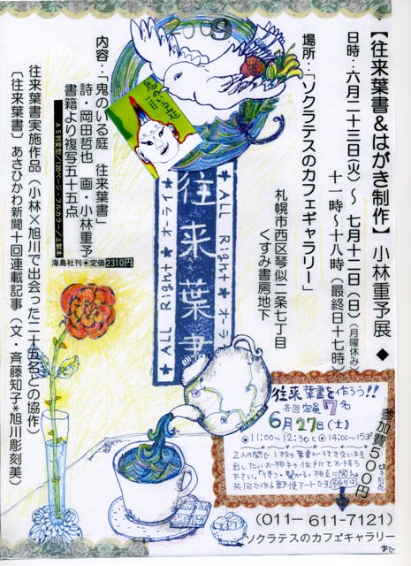 チラシを見ていただければ分かりますが、札幌で小林重予さんの個展が開催されるようです。